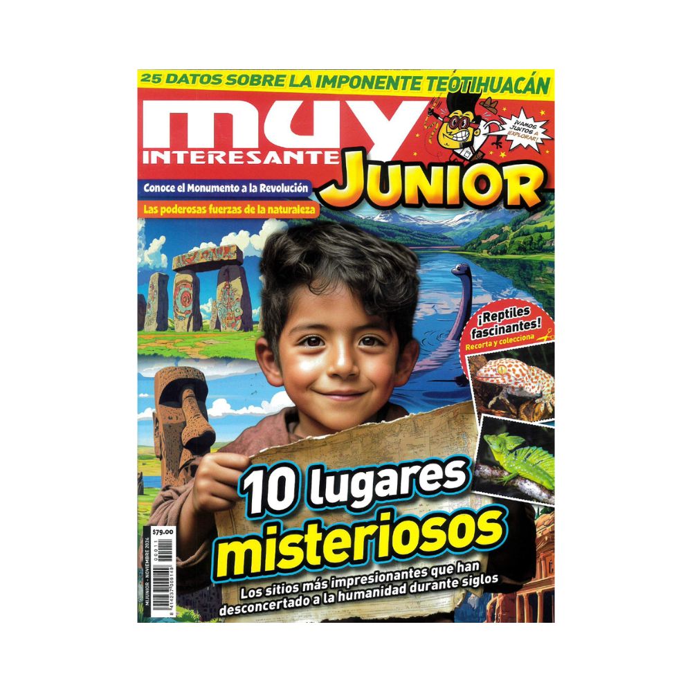 ¡La aventura comienza en Muy Interesante Junior! Descubre 10 lugares misteriosos del planeta, conoce el Monumento a la Revolución, maravíllate con las poderosas fuerzas de la naturaleza y explora el mundo de los reptiles más fascinantes.